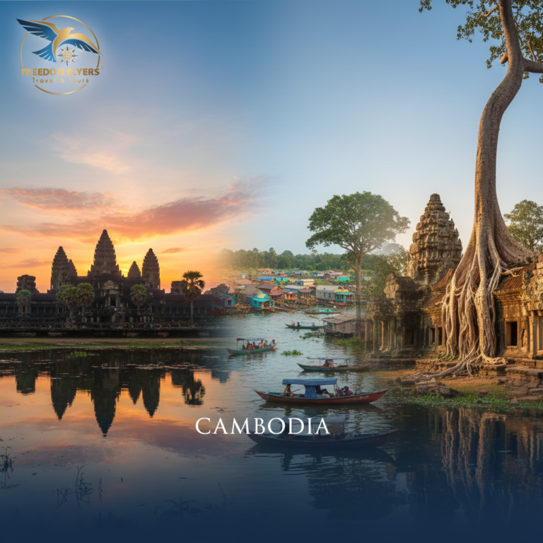 Cambodia, the heart of Southeast Asia, is a land of ancient temples, warm culture, and unforgettable landscapes. From the world-famous Angkor Wat to the peaceful riverside vibes of Phnom Penh and the white-sand beaches of Sihanoukville, Cambodia offers a perfect mix of history, relaxation, and adventure.